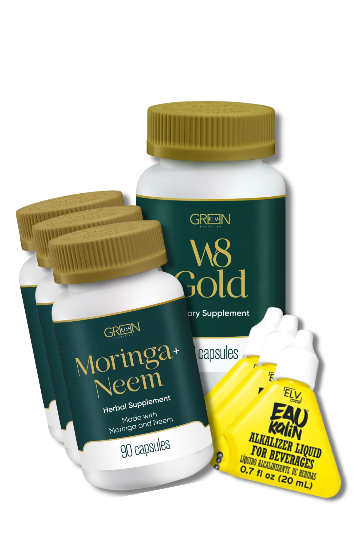 W8 Gold + EAU Kalin (3) + Moringa y Neem (3) | Pack Completo para Bajar de Peso y Desintoxicar el Cuerpo